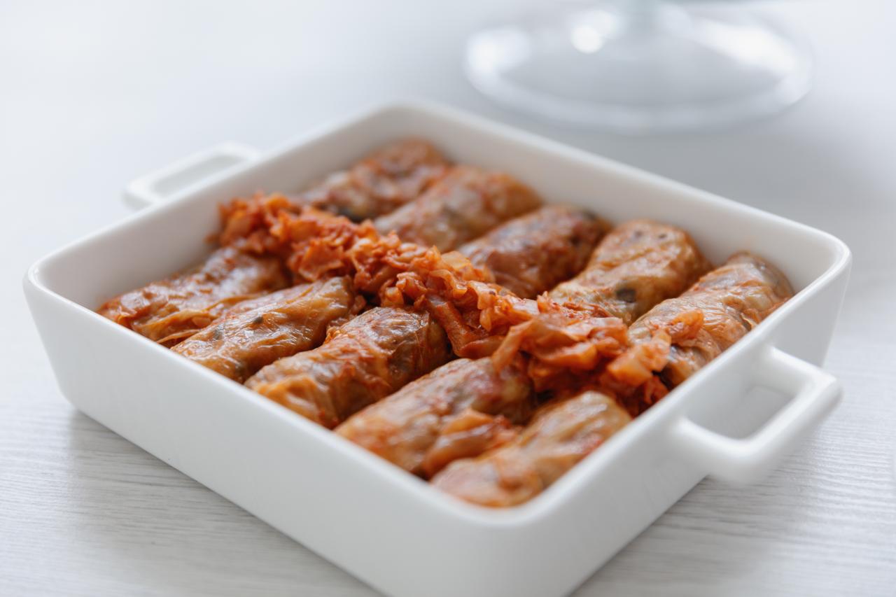 Ingrediente: varză murată, ciuperci champignon, soia granule, orez, morcov, țelină, păstârnac, ardei kapia, dovlecel, sare, piper, cimbru, chili